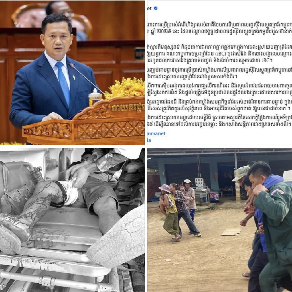 «ខ្ញុំសូមថ្កោលទោសចំពោះការប្រើប្រាស់អំពើហិង្សារបស់ភាគីថៃមកលើប្រជាពលរដ្ឋស៊ីវិលស្លូតត្រង់កម្ពុជានៅភូមិព្រៃចាន់ នាល្ងាចថ្ងៃទី១២ ខែវិច្ឆិកា ឆ្នាំ ២០២៥ នេះ ដែលបណ្តាលឱ្យប្រជាពលរដ្ឋស៊ីវិលស្លូតត្រង់កម្ពុជារបួស៣នាក់ និងស្លាប់បាត់បង់ជីវិត ១នាក់។