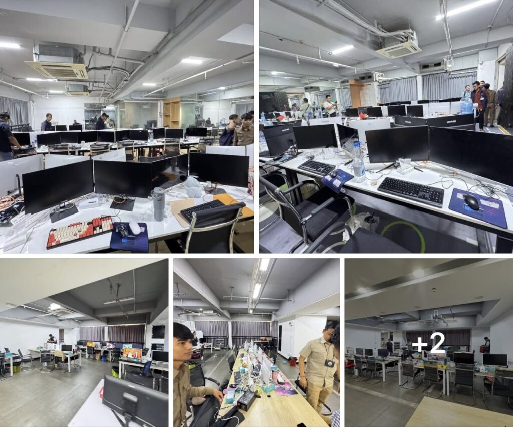 ភ្នំពេញ៖វត្ថុតាងរួមមានកុំព្យូទ័រលើតុ (All in one) ១៦៨គ្រឿង, ធុង CPU ០៦គ្រឿង, ម៉ូនីទ័រ ៣៥គ្រឿង និងទូរស័ព្ទ ៦០០គ្រឿង ត្រូវបានកម្លាំងសមត្ថកិច្ចចម្រុះខណ្ឌចំការមនរាជធានីភ្នំពេញ ដកហូតនៅក្នុងប្រតិបត្តិការចុះត្រួតពិនិត្យឆែកឆេរទីតាំងប្លុក E នៃអគារយៀកថៃ ភូមិ១០ ក្នុងសង្កាត់ទន្លេបាសាក់ ខណ្ឌចំការមន រាជធានីភ្នំពេញ កាលពីព្រឹកថ្ងៃទី១៤ ខែវិច្ឆិកា ឆ្នាំ២០២៥ ក្រោយរបាយការណ៍ស្រាវជ្រាវរបស់សមត្ថកិច្ច បង្ហាញការសង្ស័យ ថាមានជាប់ពាក់ព័ន្ធនឹងការលបលួចប្រព្រឹត្តការឆបោកតាមប្រព័ន្ធបច្ចេកវិទ្យា។