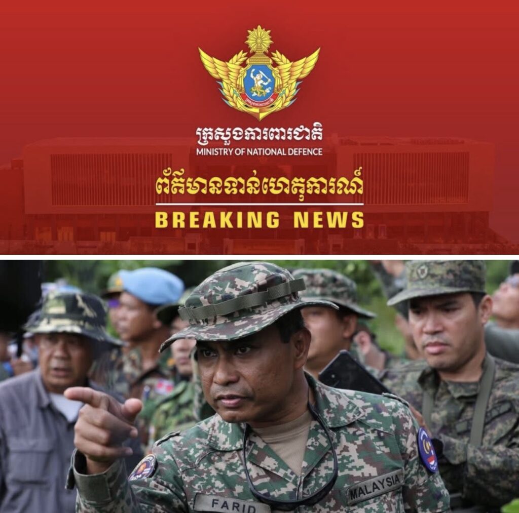 ភ្នំពេញ៖ក្រសួងការពារជាតិ បានបញ្ជាក់ឱ្យដឹងថា នៅព្រឹកថ្ងៃទី១៩ ខែវិច្ឆិកា ឆ្នាំ២០២៥ នៅវេលាម៉ោង១១:០៨នាទីព្រឹក ក្រុមអ្នកសង្កេតការណ៍អាស៊ាន (AOT) ក្រោមការសម្របសម្រួលរបស់ក្រសួងការពារជាតិកម្ពុជាបានចុះទៅពិនិត្យនិងផ្ទៀងផ្ទាត់ការអនុវត្តបទឈប់បាញ់នៅច្រកច១ ឃុំថ្មដា ស្រុកវាលវែង ខេត្តពោធិ៍សាត់។
