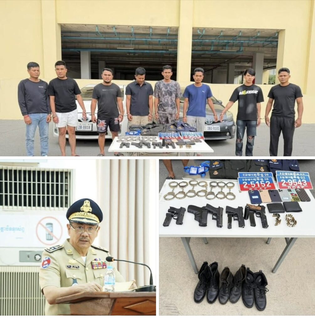 បង្ក្រាបមុខក្រុមក្លែងបន្លំជាសមត្ថកិច្ច ចាប់ជំរិតទារលុយពីជនជាតិចិនពេលយប់ ធ្វើឲ្យប៉ះពាល់ភ្ញៀវទេសចរយ៉ាងខ្លាំងក្រោយឃាត់ខ្លួនបាន៨នាក់ និងកាំភ្លើងខ្លី៤ដើម