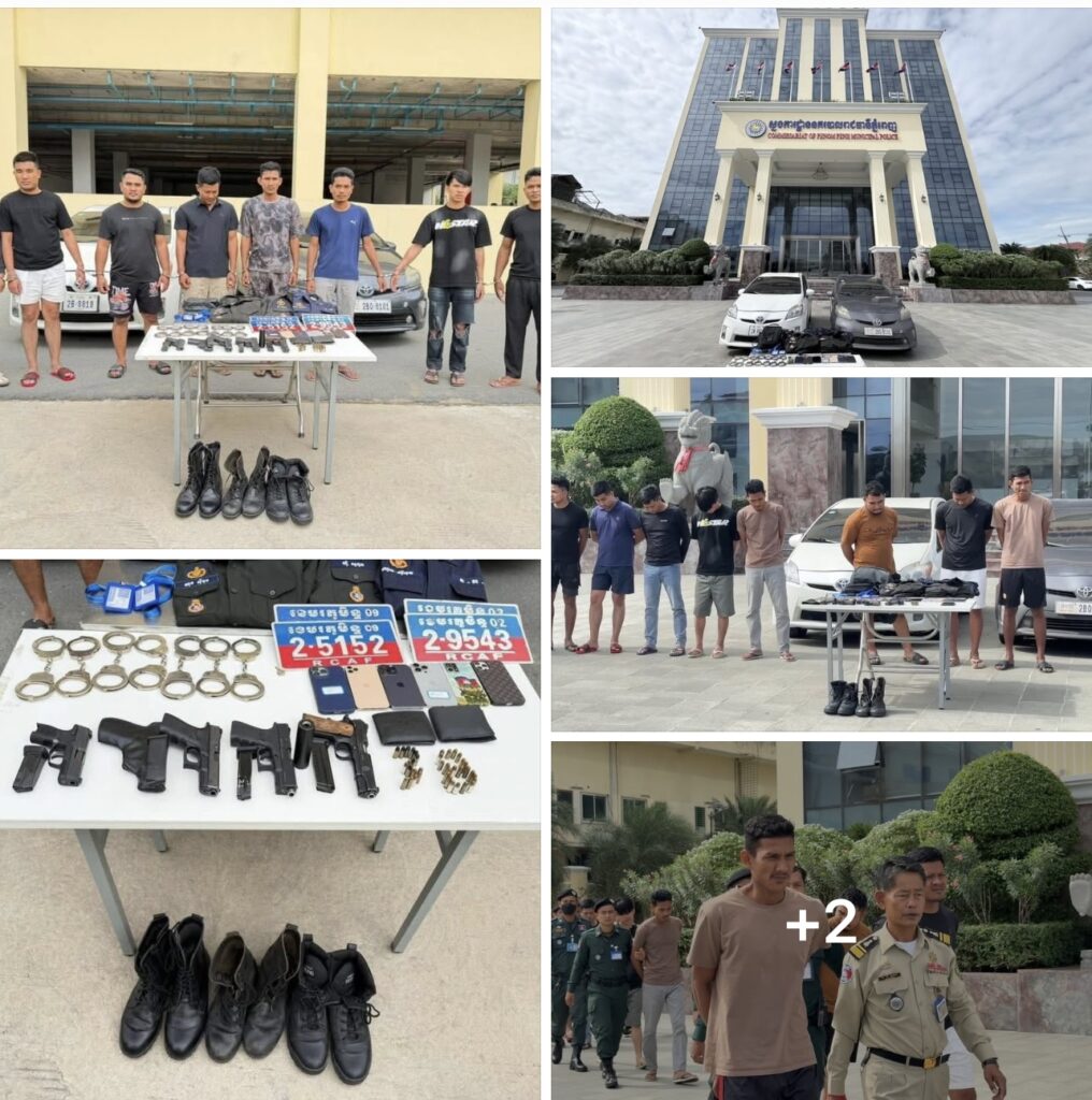 ភ្នំពេញ៖នាព្រឹកថ្ងៃទី២២ ខែវិច្ចិកា ឆ្នាំ២០២៥នេះនៅស្នងការដ្ឋាននគរបាលរាជធានីភ្នំពេញធ្វើការបង្ហាញមុខក្រុុមជនសង្ស័យ៨នាក់ ក្រោយក្លែងបន្លំខ្លួនជាសមត្ថកិច្ច និងខ្លះស្លៀកពាក់ឯកសណ្ឋានកងរាជអាវុធហត្ថ ហេីយធ្វេីសកម្មភាពចាប់ជំរិតទារប្រាក់ពីជាតិចិនចំនួន៥២,០០០ដុល្លា ក្នុងភូមិសាស្ត្ររាជធានីភ្នំពេញ ។