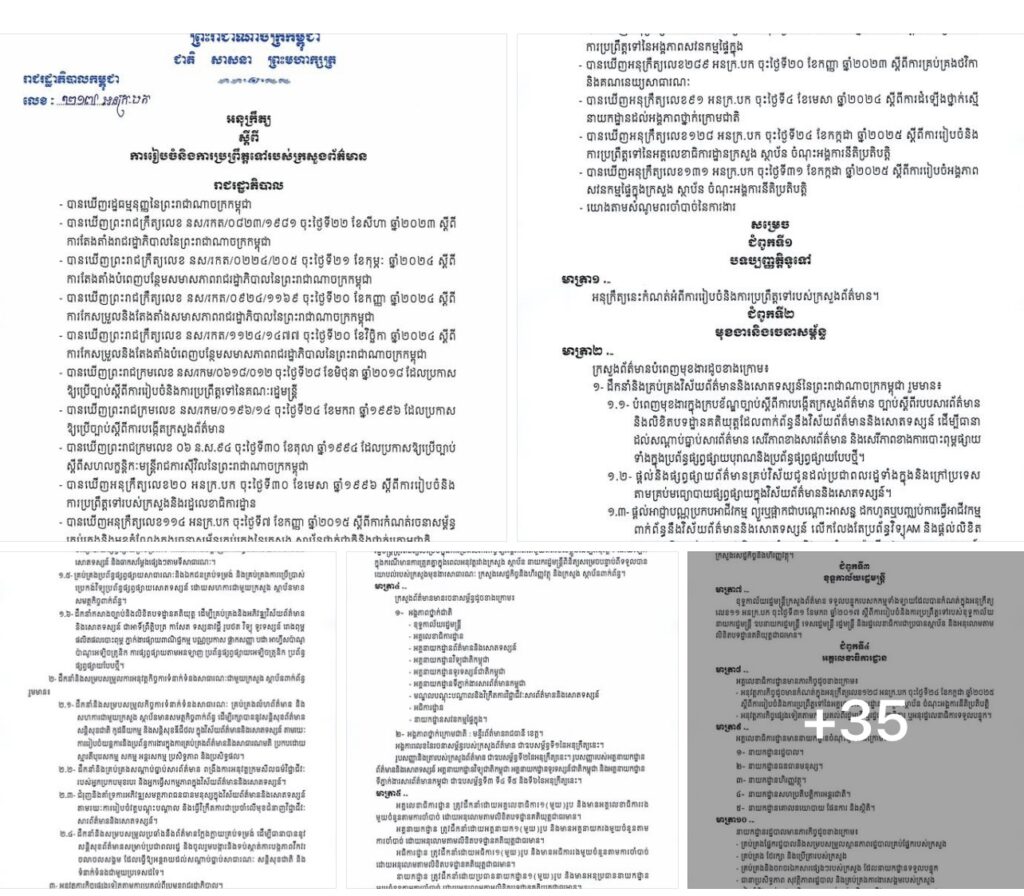 ភ្នំពេញ៖សម្តេចបវរធិបតី ហ៊ុន ម៉ាណែត នាយករដ្ឋមន្ត្រីនៃកម្ពុជា បានចេញអនុក្រឹត្យ ស្តីពី ការរៀបចំនិងការប្រព្រឹត្តទៅរបស់ក្រសួងព័ត៌មាន។