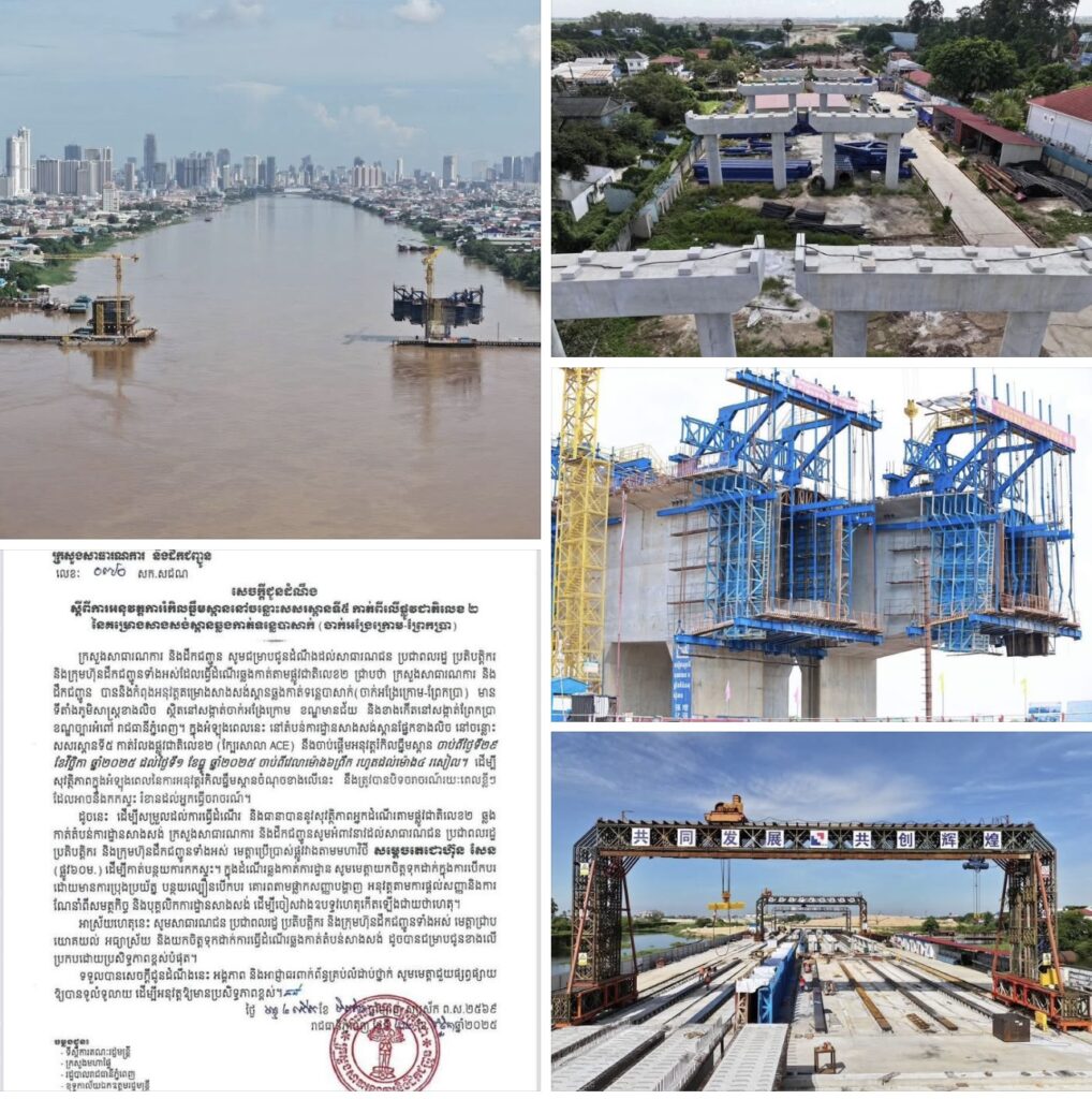 ក្នុងអំឡុងពេលនេះនៅតំបន់ការដ្ឋានសាងសង់ស្ពានផ្នែកខាងលិច នៅចន្លោះសសរស្ពានទី៥ កាត់រំលងផ្លូវជាតិលេខ២ (ក្បែរសាលា ACE) នឹងចាប់ផ្តើមអនុវត្តរំកិលធ្នឹមស្ពាន ចាប់ពីថ្ងៃទី២៩ ខែវិច្ឆិកា ឆ្នាំ២០២៥ ដល់ថ្ងៃទី១ ខែធ្នូ ឆ្នាំ២០២៥ ចាប់ពីវេលាម៉ោង៦ព្រឹក រហូតដល់ម៉ោង ៤រសៀល។ ដើម្បីសុវត្ថិភាពក្នុងអំឡុងពេលនៃការអនុវត្តរំកិលធ្នឹមស្ពានចំណុចខាងលើនេះ នឹងត្រូវបានបិទចរាចរណ៍រយៈពេលខ្លីៗ ដែលអាចនឹងកកស្ទះ រំខានដល់អ្នកធ្វើចរាចរណ៍។