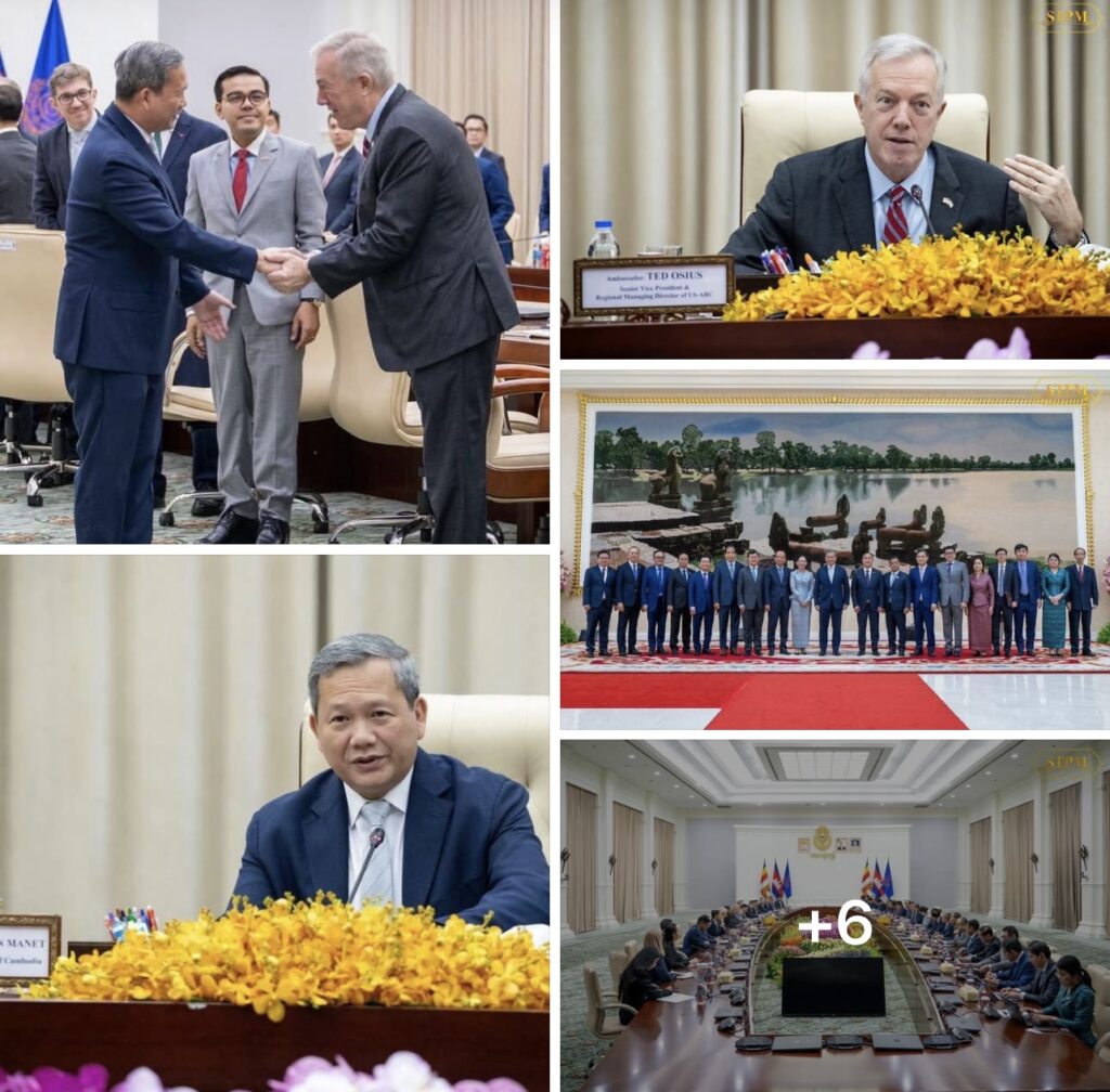 ភ្នំពេញ៖នាព្រឹកថ្ងៃទី០២ ខែធ្នូ ឆ្នាំ២០២៥សម្តេចមហាបវរធិបតី ហ៊ុន ម៉ាណែត នាយករដ្ឋមន្រ្តី នៃព្រះរាជាណាចក្រកម្ពុជា បានអនុញ្ញាតឱ្យ ឯកឧត្តម Ted Osius (ឯកអគ្គរដ្ឋទូតអាម៉េរិកចូលនិវត្តន៍) អនុប្រធានជាន់ខ្ពស់ និងជានាយកគ្រប់គ្រងប្រចាំតំបន់នៃក្រុមប្រឹក្សាធុរកិច្ចសហរដ្ឋអាម៉េរិក-អាស៊ាន (US-ABC) និង គណៈប្រតិភូ ចូលជួបសម្តែងការគួរសម និងពិភាក្សាការងារ នៅវិមានសន្តិភាព។