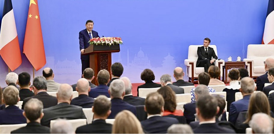 លោក Xi Jinping បានលើកឡើងថា ឆ្នាំនេះគឺជាការចាប់ផ្តើមនៃ ៦០ ឆ្នាំថ្មីមួយទៀតនៃទំនាក់ទំនងចិន-បារាំង។ កិច្ចសហប្រតិបត្តិការសេដ្ឋកិច្ច និងពាណិជ្ជកម្មរវាងប្រទេសទាំងពីរបានត្រូវពង្រីកជាបន្តបន្ទាប់ និងមានភាពធន់កាន់តែខ្លាំងឡើងៗ។ ក្នុងរយៈពេល ១០ ខែដើមឆ្នាំនេះ ទំហំពាណិជ្ជកម្មទ្វេភាគីបានឡើងដល់ ៦៨,៧៥ ពាន់លានដុល្លារអាមេរិក ហើយទំហំសរុបនៃការវិនិយោគទៅវិញទៅមកលើសពី ២៧ ពាន់លានដុល្លារអាមេរិក។ ភាគីទាំងពីរគួរតែប្រកាន់ខ្ជាប់ គោលបំណងដើមនៃការបង្កើតទំនាក់ទំនងការទូត ក្តាប់ជាប់កាលានុវត្តភាព ពង្រឹងកិច្ចសហប្រតិបត្តិការ និងជំរុញការអភិវឌ្ឍ ប្រកបដោយស្ថិរភាព និងយូរអង្វែងនៃទំនាក់ទំនងទ្វេភាគី ដើម្បីរួមគ្នាជំរុញកិច្ចសហប្រតិបត្តិការចិន-បារាំងឱ្យកាន់តែប្រសើរឡើង និងប្រើប្រាស់ស្ថិរភាពនៃទំនាក់ទំនងចិន-បារាំង ដើម្បីឆ្លើយតបកត្តាមិនប្រាកដប្រជានៃពិភពលោកសព្វថ្ងៃនេះ។