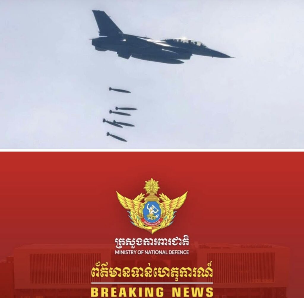 យោធាថៃប្រើប្រាស់យន្តហោះ F-16 ទម្លាក់គ្រាប់បែក៣គ្រាប់នៅសណ្ឋាគារកាស៊ីណូជាប់ច្រកព្រំដែនជ័យជំនះ