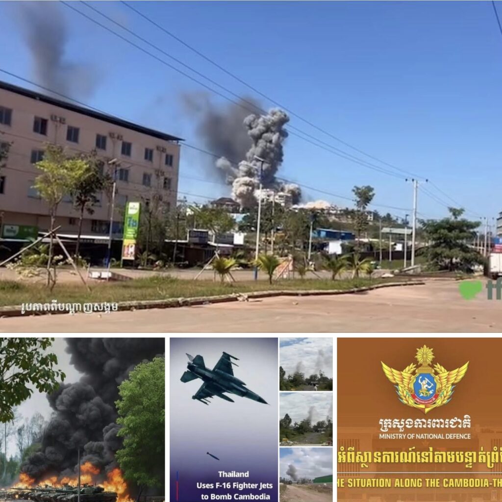 ម្តងហើយម្តងទៀត កងទ័ពថៃតែងតែយកលេស និងប្រើប្រាស់គ្រប់ឧបាយកល ដើម្បីលាក់កំបាំងទង្វើ ឈ្លានពានរបស់ខ្លួនមកលើអធិបយតេយ្យ និងបូរណភាពទឹកដីរបស់កម្ពុជាដោយបំពានយ៉ាងកំរោលទៅ លើច្បាប់អន្តរជាតិ។ ទង្វើឈ្លានពានរបស់កងទ័ពថៃមកលើកម្ពុជាដ៏សាហាវឃោរឃៅ រួមទាំងការប្រើប្រាស់អាវុធ យុទ្ធោបករណ៍ធុនធ្ងន់ និងមានកម្រិតបំផ្លាញខ្ពស់ដូចជា៖ យន្តហោះចម្បាំង F-16, នាវាចម្បាំង, កាំភ្លើងធំ គ្រប់ប្រភេទ, គ្រាប់បែកចង្កោម, ផ្សែងពុល, ដ្រូនគ្រប់ប្រភេទ និងអាវុធធុនធ្ងន់ជាច្រើនទៀតមកវាយប្រហារលើកម្ពុជា ជាពិសេសទៅលើជនស៊ីវិល និងបេតិកភណ្ឌដែលជាសម្បត្តិរបស់មនុស្សជាតិបានបញ្ជាក់យ៉ាងច្បាស់ក្រឡែតថា ថៃគឺជារដ្ឋដែលបំពានច្បាប់អន្តរជាតិ ជារដ្ឋដែលបំផ្លាញសន្តិភាព និងសន្តិសុខ មិនត្រឹមតែរវាងជាមួយកម្ពុជាប៉ុណ្ណោះទេ ប៉ុន្តែតំបន់ទាំងមូល ដើម្បីបម្រើមហិច្ឆតាឈ្លានពានមិនចេះឆ្អែតឆ្អន់របស់ខ្លួនមកលើប្រទេសដែលតូច និងខ្សោយជាងខ្លួនប៉ុណ្ណោះ។