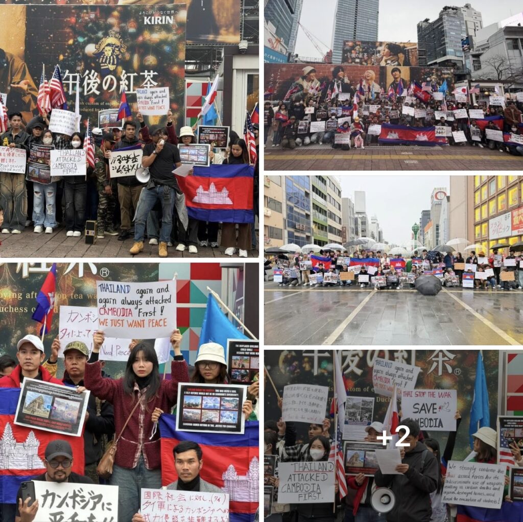 ជប៉ុនសហគមន៍ខ្មែរ ពលករ និងនិស្សិតខ្មែរដែលកំពុងស្នាក់នៅ ធ្វើការ និងសិក្សានៅប្រទេសជប៉ុន ប្រមាណ ៣០០នាក់ នៅថ្ងៃទី២១ ខែធ្នូ ឆ្នាំ២០២៥នេះ បានបន្តប្រមូលផ្តុំគ្នា ចំនួន ៣ទីតាំង នៅទីក្រុងតូក្យូ ខេត្តអូសាកា និងខេត្តហ្គិហ្វូ ដើម្បីសម្តែងមតិថ្កោលទោសយ៉ាងដាច់អហង្ការបំផុត ចំពោះទង្វើអមនុស្សធម៌ដ៏សាហាវយង់ឃ្នងរបស់រដ្ឋាភិបាលក្រុងបាងកក និងយោធាថៃ ដែលបានបើកការវាយប្រហារគ្មានរើសគោលដៅ និងប្រើប្រាស់អាវុធគ្រប់ធុន គ្រប់មធ្យោបាយ តាមផ្លូវគោក ផ្លូវអាកាស និងផ្លូវទឹកក្នុងការឈ្លានពានដែនអធិបតេយ្យភាពកម្ពុជា។