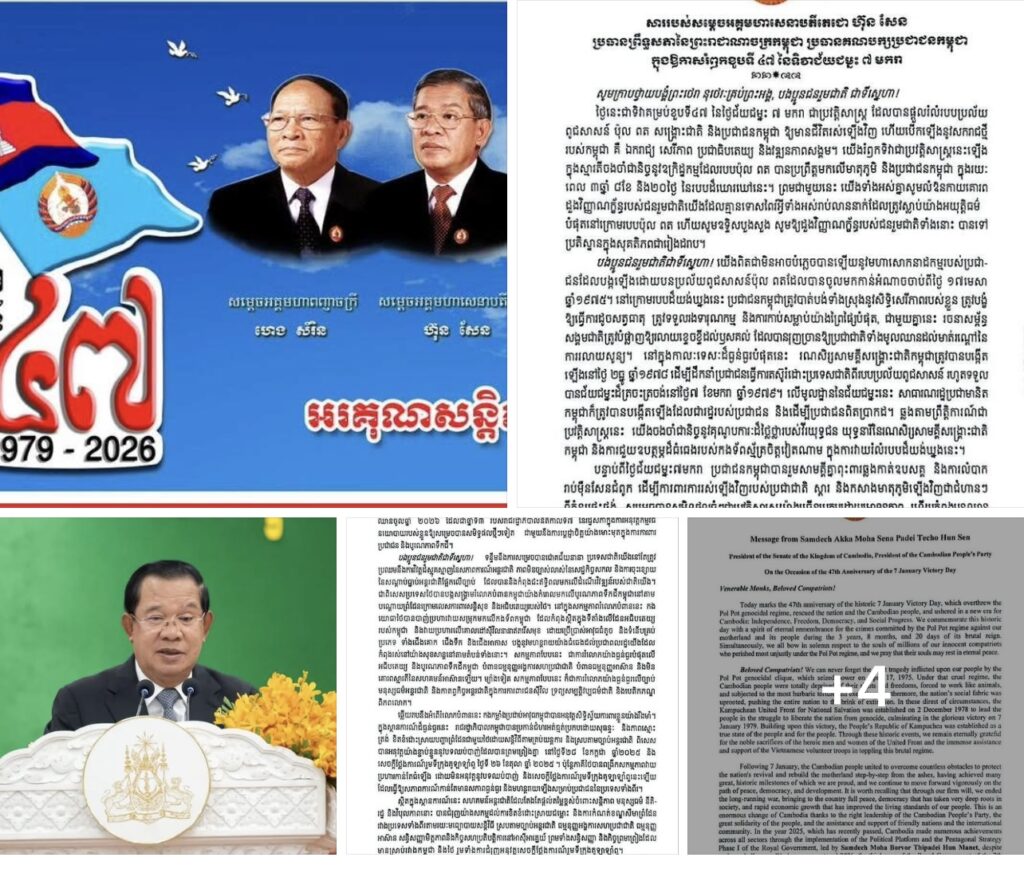 ថ្ងៃនេះជាទិវាគម្រប់ខួបទី៤៧ នៃថ្ងៃជ័យជម្នះ ៧ មករា ជាប្រវត្តិសាស្ត្រ ដែលបានផ្តួលរំលំរបបប្រល័យ ពូជសាសន៍ ប៉ុល ពត សង្គ្រោះជាតិ និងប្រជាជនកម្ពុជា ឱ្យមានជីវិតរស់ឡើងវិញ ហើយបើកឡើងនូវសករាជថ្មី របស់កម្ពុជា គឺ ឯករាជ្យ សេរីភាព ប្រជាធិបតេយ្យ និងវឌ្ឍនភាពសង្គម។ យើងរំឭកទិវាជាប្រវត្តិសាស្ត្រនេះឡើង ក្នុងស្មារតីចងចាំជានិច្ចនូវឧក្រិដ្ឋកម្មដែលរបបប៉ុល ពត បានប្រព្រឹត្តមកលើមាតុភូមិ និងប្រជាជនកម្ពុជា ក្នុងរយៈ ពេល ៣ឆ្នាំ ៨ខែ និង២០ថ្ងៃ នៃរបបដ៏ឃោរឃៅនេះ។ ព្រមជាមួយនេះ យើងទាំងអស់គ្នាសូមលំឱនកាយគោរព ដួងវិញ្ញាណក្ខ័ន្ធរបស់ជនរួមជាតិយើងដែលគ្មានទោសពៃរ៍អ្វីទាំងអស់រាប់លាននាក់ដែលត្រូវស្លាប់យ៉ាងអយុត្តិធម៌ បំផុតនៅក្រោមរបបប៉ុល ពត ហើយសូមឧទ្ទិសបួងសួង សូមឱ្យដួងវិញ្ញាណក្ខ័ន្ធរបស់ជនរួមជាតិទាំងនោះ បានទៅ ប្រតិស្ឋានក្នុងសុគតិភពជារៀងដរាប។
