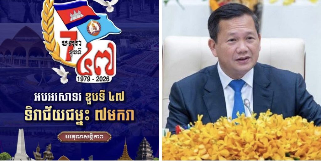 ភ្នំពេញ៖សម្តេចបវរធិបតី ហ៊ុន ម៉ាណែត នាយករដ្ឋមន្ត្រីនៃកម្ពុជា នៅព្រឹកថ្ងៃទី៧ ខែមករា ឆ្នាំ២០២៦នេះ បានបង្ហោះសារអបអរសាទរខួបទី៤៧ (៧ មករា ១៩៧៩ – ៧ មករា ២០២៦) នៃទិវាជ័យជម្នះ ៧ មករា ថ្ងៃកំណើតទី២ របស់យើងទាំងអស់គ្នា។