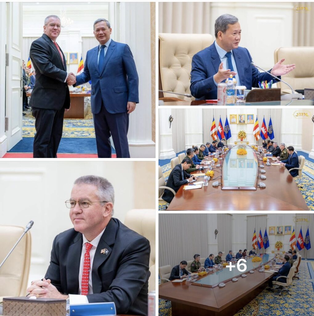 ភ្នំពេញ៖សម្តេចបវរធិបតី ហ៊ុន ម៉ាណែត នាយករដ្ឋមន្ត្រីនៃកម្ពុជា នៅព្រឹកថ្ងៃសៅរ៍ ទី១០ ខែមករា ឆ្នាំ២០២៦ បានជួបជាមួយ លោក Michael George DeSombre ឧបការីរដ្ឋមន្ត្រីការបរទេសសហរដ្ឋអាមេរិក ទទួលបន្ទុកតំបន់អាសុីបូព៌ា និងប៉ាសុីហ្វិក ក្នុងជំនួបសម្តែងការគួរសម និងពិភាក្សាការងារនៅវិមានសន្តិភាព៕