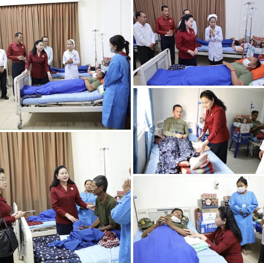 សៀមរាប៖បើទោះបីជាមានបទឈប់បាញ់ជាបន្ទាន់ជាលើកទី២ កាលពីថ្ងៃទី២៧ ខែធ្នូ ឆ្នាំ២០២៥កន្លងមកហើយក៏ដោយ ក៏នៅមានវីរយុទ្ធជនមួយចំនួននៅបន្តសម្រាកព្យាបាលនៅតាមមន្ទីរពេទ្យ។ ក្នុងមនោសញ្ចេតនាអាណិតស្រឡាញ់ដ៏ជ្រាលជ្រៅបំផុត ចំពោះពលិកម្មដ៏ធំធេងមិនអាចកាត់ថ្លៃបានសម្រាប់ជាតិមាតុភូមិ, នៅរសៀលថ្ងៃទី១៦ ខែមករា ឆ្នាំ២០២៦នេះ សម្ដេចកិត្ដិព្រឹទ្ធបណ្ឌិត ប៊ុន រ៉ានី ហ៊ុនសែន ប្រធានកាកបាទក្រហមកម្ពុជា បានបន្តអញ្ជើញចុះសួរសុខទុក្ខដោយផ្ទាល់ចំពោះវីរយុទ្ធជនការពារបូរណភាពទឹកដីដ៏អង់អាចក្លាហានដែលរងរបួស និងពុលផ្សែងក្នុងសមរភូមិ កំពុងសម្រាកព្យាបាលនៅមន្ទីរពេទ្យបង្អែកខេត្តសៀមរាប និងមន្ទីរពេទ្យយោធភូមិភាពទី៤។ នេះជាការចុះសួរសុខទុក្ខនៅតាមមន្ទីរពេទ្យជាលើកទី៥ របស់អ្នកម្តាយមនុស្សធម៌ ដើម្បីលើកទឹកចិត្ត ផ្តល់ភាពកក់ក្តៅ និងផ្តល់ក្តីសង្ឃឹមដ៏ធំធេងដល់វីរយុទ្ធជនដ៏អង់អាចក្លាហានរបស់យើង ដែលសម្តេចកិត្តិព្រឹទ្ធបណ្ឌិត ប៊ុន រ៉ានី ហ៊ុនសែន តែងតែមានក្តីបារម្ភ ខ្វល់ខ្វាយគ្រប់វិនាទីចំពោះសុខទុក្ខរបស់វីរយុទ្ធជន និងក្រុមគ្រួសារ ក៏ដូចជាប្រជាជនរងគ្រោះនិងងាយរងគ្រោះបំផុតដែលកំពុងជួបប្រទះនូវទុក្ខលំបាក៕