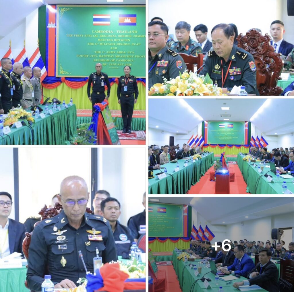 On the afternoon of January 27, the Secretariat of the Cambodia-Thailand Regional Border Committee (RBC) convened at the Poipet International Border Checkpoint, between Cambodia’s 5th Military Region and Thailand’s 1st Army Area. The Cambodian delegation was led by Major General Sar Kimpak, Chief of the RBC Secretariat (Cambodia), while the Thai delegation led by Major General Phittayakool Pothisuwan, Chairman of the RBC Secretariat (Thailand). During the session, both sides discussed key agendas and exchanged documentation in preparation for the upcoming Special Meeting of the Cambodia-Thailand RBC, scheduled for January 29, 2026.