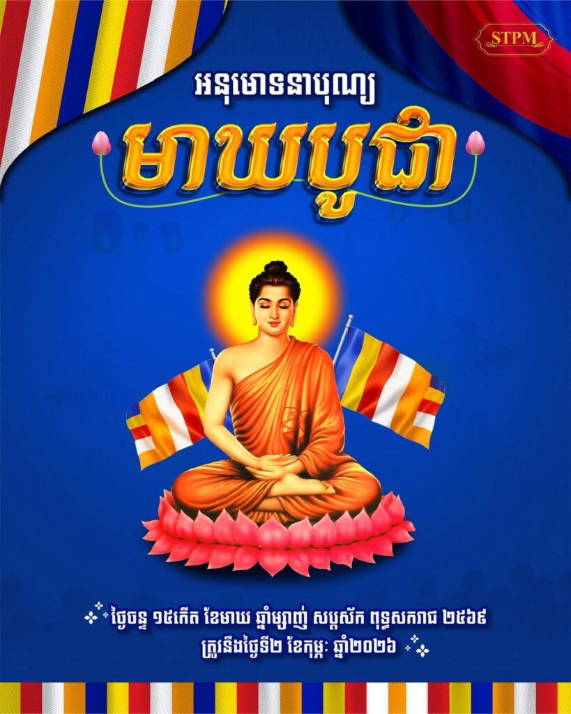 ភ្នំពេញ៖ថ្ងៃចន្ទ ១៥កើត ខែមាឃ ឆ្នាំម្សាញ់ សប្តស័ក ព.ស ២៥៦៩ ត្រូវនឹងថ្ងៃទី២ ខែកុម្ភៈ ឆ្នាំ២០២៦នេះ ថ្ងៃសីលពេញបូណ៌មី គឺជាថ្ងៃ «បុណ្យមាឃបូជា» ដែលមានសារៈសំខាន់នៅក្នុងពុទ្ធសាសនា ប្រហាក់ប្រហែលនឹងបុណ្យពុទ្ធសាសនាដទៃទៀតដែរ រួមមាន៖ ពិសាខបូជា, អាសាឍបូជា និងបុណ្យបវារណា (ចេញវស្សា)។
