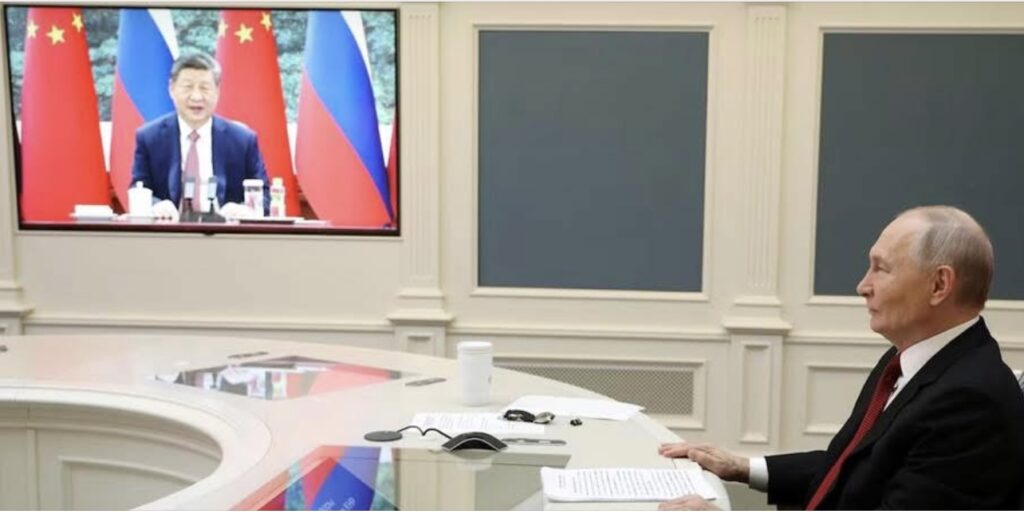 ប៉េកាំង៖ប្រធានាធិបតីចិន លោក ស៊ី ជីនពីង និងប្រធានាធិបតីរុស្ស៊ី លោក វ៉្លាឌីមៀ ពូទីន បានប្រកាសសាទរចំពោះចំណងមិត្តភាពរវាងប្រទេសទាំងពីរ នៅក្នុងកិច្ចសន្ទនាតាមវីដេអូនៅថ្ងៃពុធនេះ ខណៈដែលសង្គ្រាមរបស់រុស្ស៊ីនៅអ៊ុយក្រែនជិតឈានចូលដល់ខួបទី ៤ឆ្នាំ។ នេះបើតាមការចេញផ្សាយដោយទីភ្នាក់ងារសារព័ត៌មាន Reuters។