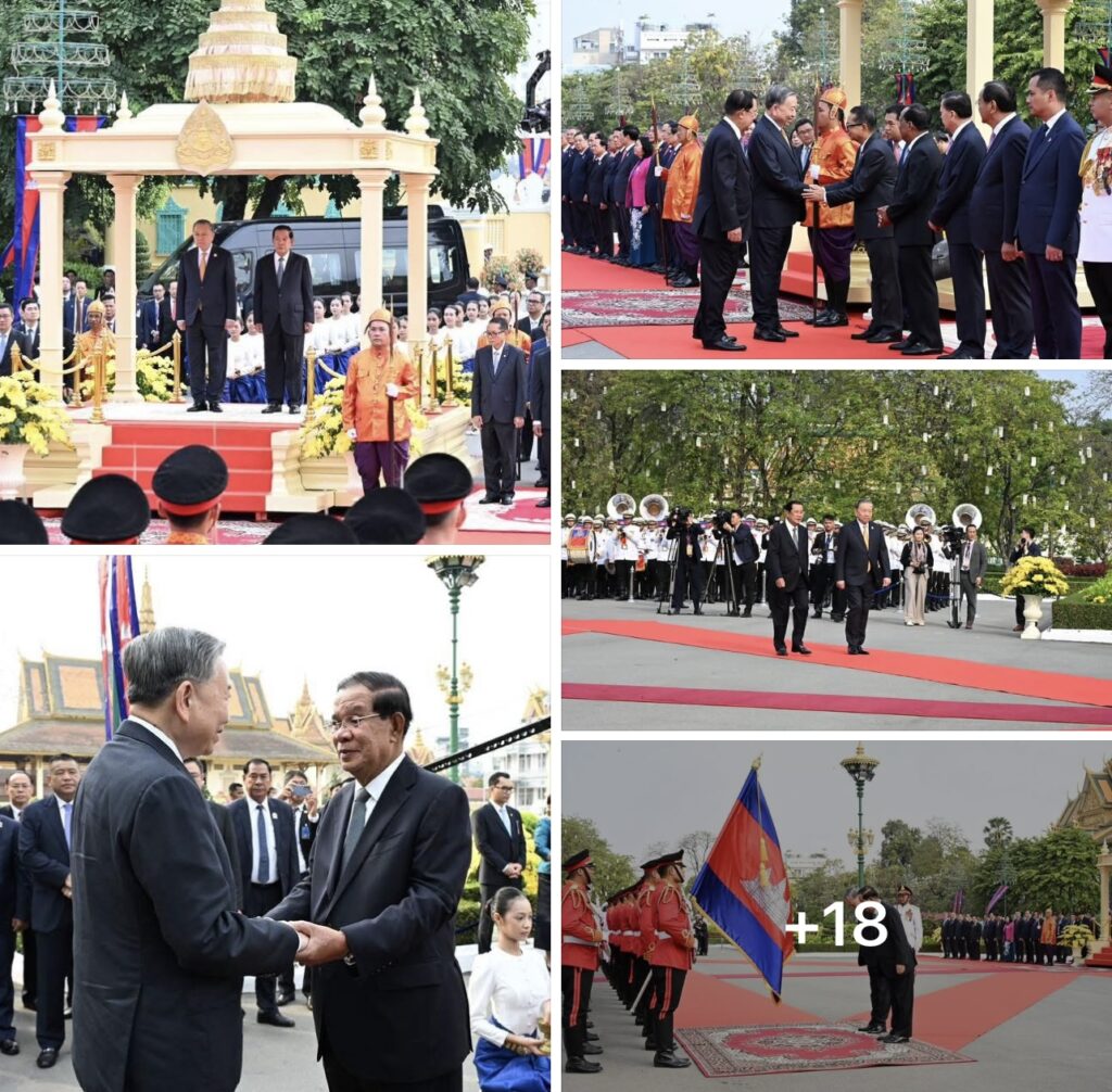 ភ្នំពេញ៖នៅព្រះបរមរាជវាំង នាព្រឹកថ្ងៃសុក្រ ៤រោច ខែមាឃ ឆ្នាំម្សាញ់ សប្តស័ក ពុទ្ធសករាជ ២៥៦៩ ត្រូវនឹងថ្ងៃទី៦ ខែកុម្ភៈ ឆ្នាំ២០២៦នេះ សម្ដេចអគ្គមហាសេនាបតីតេជោ ហ៊ុន សែន ប្រធានព្រឹទ្ធសភានៃព្រះរាជាណាចក្រកម្ពុជា បានអញ្ជើញជាព្រះរាជតំណាងដ៏ខ្ពង់ខ្ពស់បំផុត របស់ព្រះករុណាព្រះបាទសម្ដេចព្រះបរមនាថ នរោត្តម សីហមុនី ព្រះមហាក្សត្រនៃព្រះរាជាណាចក្រកម្ពុជា ទទួលបដិសណ្ឋារកិច្ចស្វាគមន៍ផ្លូវរដ្ឋជូន ឯកឧត្តម តូ ឡឹម អគ្គលេខាធិការបក្សកុម្មុយនីស្តវៀតណាម ជាមួយនឹងជំនួបសាវនាកាផងដែរ ក្នុងឱកាសដែល ឯកឧត្តម អញ្ជើញបំពេញទស្សនកិច្ចផ្លូវរដ្ឋនៅកម្ពុជា។
