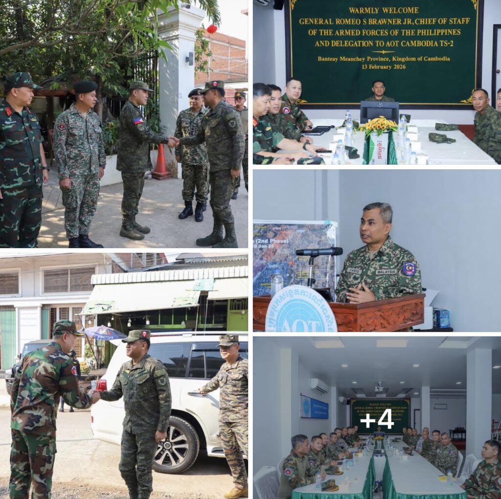 បន្ទាយមានជ័យលោកស្រីឧត្តមសេនីយ៍ឯក ម៉ាលី សុជាតា អ្នកនាំពាក្យក្រសួងការពារជាតិកម្ពុជា បានឱ្យដឹងថា នៅថ្ងៃសុក្រ ទី១៣ ខែកុម្ភៈ ឆ្នាំ២០២៦នេះ ក្រុមសម្របសម្រួល (CLG) នៃព្រះរាជាណាចក្រកម្ពុជា បានសម្របសម្រួលជូនដល់ក្រុមអ្នកសង្កេតការណ៍អាស៊ាន (AOT) ទទួលស្វាគមន៍ នាយឧត្តមសេនីយ៍ ROMEO S BRAWNER JR អគ្គមេបញ្ជាការ នៃកងទ័ពហ្វីលីពីន ដែលអញ្ជើញមកទស្សនកិច្ចទីតាំងមួយចំនួននៅក្នុងខេត្តបន្ទាយមានជ័យ។