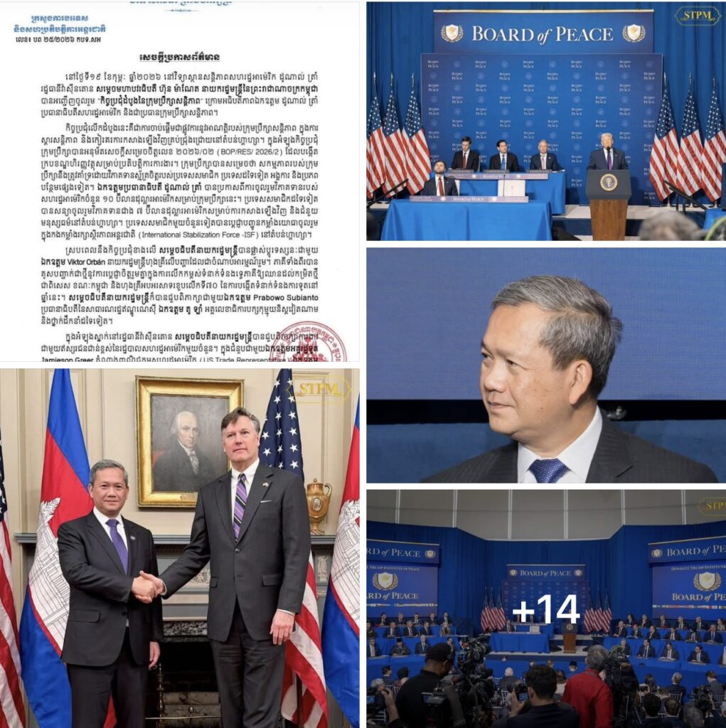 គួររំលឹកថា កាលពីថ្ងៃទី១៩ ខែកុម្ភៈ ឆ្នាំ២០២៦ នៅវិទ្យាស្ថានសន្តិភាពសហរដ្ឋអាម៉េរិក ដូណាល់ ត្រាំ រដ្ឋធានីវ៉ាស៊ីនតោន សម្តេចមហាបវរធិបតី ហ៊ុន ម៉ាណែត នាយករដ្ឋមន្ត្រីនៃព្រះរាជាណាចក្រកម្ពុជា បានអញ្ជើញចូលរួម «កិច្ចប្រជុំដំបូងនៃក្រុមប្រឹក្សាសន្តិភាព» ក្រោមអធិបតីភាពលោក ដូណាល់ ត្រាំ ប្រធានាធិបតីសហរដ្ឋអាម៉េរិក និងជាប្រធានក្រុមប្រឹក្សាសន្តិភាព។