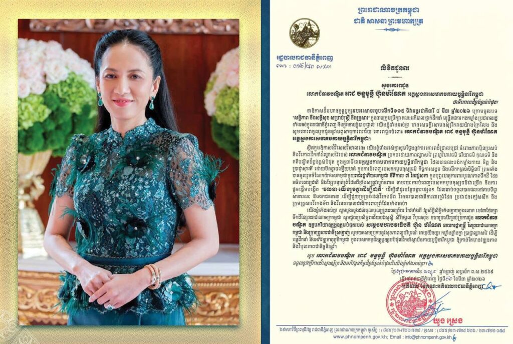 ឯកឧត្តម ឃួង ស្រេងផ្ញើសារលិខិតជូនពរ លោកជំទាវបណ្ឌិត ពេជ ចន្ទមុន្នី ហ៊ុនម៉ាណែត នាឱកាសដ៏មហានក្ខត្តឫក្សអបអរសាទរខួបលើកទី១១៥ ទិវាអន្តរជាតិនារី ៨ មីនា ឆ្នាំ២០២៦