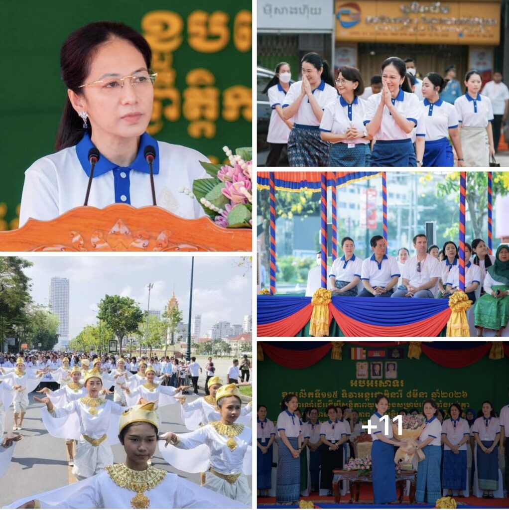ភ្នំពេញ៖លោកជំទាវបណ្ឌិត ពេជ ចន្ទមុន្នី ហ៊ុនម៉ាណែត អញ្ជើញជាអធិបតីភាពក្នុងព្រឹត្តិការណ៍ដើរ “ដើម្បីសន្តិភាពយូរអង្វែង សម្រាប់យើងទាំងអស់គ្នា” ក្នុងយុទ្ធនាការអបអរសាទរខួបលើកទី១១៥ ទិវាអន្តរជាតិនារី ៨មីនា ឆ្នាំ២០២៦ ដែលពិធីដើរចាប់ផ្តើមពីមុខវត្តបទុមវតី ឆ្ពោះទៅ វត្តភ្នំ ក្នុងខណ្ឌដូនពេញរាជធានីភ្នំពេញ ដោយមានពីលោកជំទាវ អ៊ឹង កន្ថាផាវី រដ្ឋមន្រ្តីក្រសួងកិច្ចការនារី លោកជំទាវ ភឿង សកុណា រដ្ឋមន្រ្តីក្រសួង វប្បធម៌ និងវិចិត្យសិល្បៈ និងឯកឧត្តម ឃួងស្រេង អភិបាលរាជធានីភ្នំពេញ និងលោកជំទាវព្រមទាំងអ្នកចូលរួមប្រមាណ ១៧០០នាក់ ។