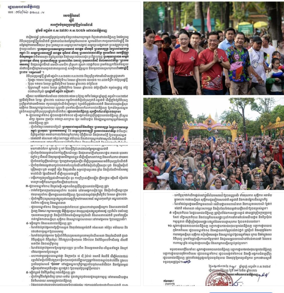 រដ្ឋបាលរាជធានីចេញសេចក្តីណែនាំស្តីពីការរៀបចំបុណ្យចូលឆ្នាំថ្មីប្រពៃណីជាតិឆ្នាំមមី អដ្ឋស័ក ព.ស.២៥៧០ គ.ស.២០២៦ នៅរាជធានីភ្នំពេញ