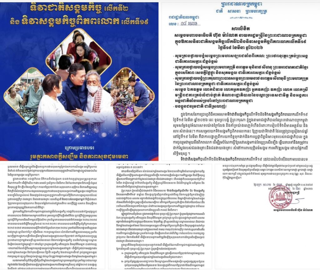 ភ្នំពេញសម្តេចបវរធិបតី ហ៊ុន ម៉ាណែត នាយករដ្ឋមន្ត្រីនៃកម្ពុជា នៅព្រឹកថ្ងៃទី១៩ ខែមីនា ឆ្នាំ២០២៦នេះ បានបង្ហោះសារអបអរសាទរ ទិវាជាតិសង្គមកិច្ចលើកទី២ និងទិវាសង្គមកិច្ចពិភពលោកលើកទី១៩ ក្រោមប្រធានបទ «រួមគ្នាកសាងក្តីសង្ឃឹម និងភាពសុខដុមរមនា»។