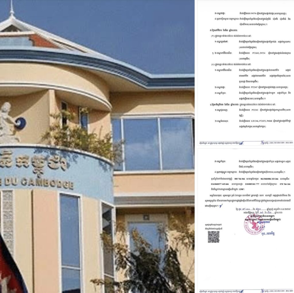 ភ្នំពេញ៖អគ្គិសនីកម្ពុជា (EDC) បានចេញសេចក្តីជូនដំណឹង ស្តីពីការអនុវត្តការងារជួសជុល ផ្លាស់ប្តូរដំឡើងបរិក្ខារនានា និងរុះរើគន្លងខ្សែបណ្តាញ អគ្គិសនីរបស់អគ្គិសនីកម្ពុជា ដើម្បីបង្កលក្ខណៈងាយស្រួលដល់ការដ្ឋានពង្រីកផ្លូវ នៅថ្ងៃទី១៩ ខែមីនា ឆ្នាំ២០២៦ ដល់ថ្ងៃទី២២ ខែមីនា ឆ្នាំ២០២៦ នៅតំបន់មួយចំនួនទៅតាមពេលវេលា និងទីកន្លែងដូចសេចក្តីជូនដំណឹងលម្អិតខាងក្រោម។ អគ្គិសនីកម្ពុជាបានបញ្ជាក់ថា «ទោះជាមានការខិតខំថែរក្សា មិនឲ្យមានការប៉ះពាល់ ដល់ការផ្គត់ផ្គង់អគ្គិសនីធំដុំ ប៉ុន្តែការផ្គត់ផ្គង់ចរន្តអគ្គិសនី នៅតំបន់ខាងលើ អាចនឹងមានការរអាក់រអួលខ្លះៗ ជៀសមិនផុតដែលយើងខ្ញុំ ស្នើសុំអភ័យទោស ទុកជាមុន» ៕