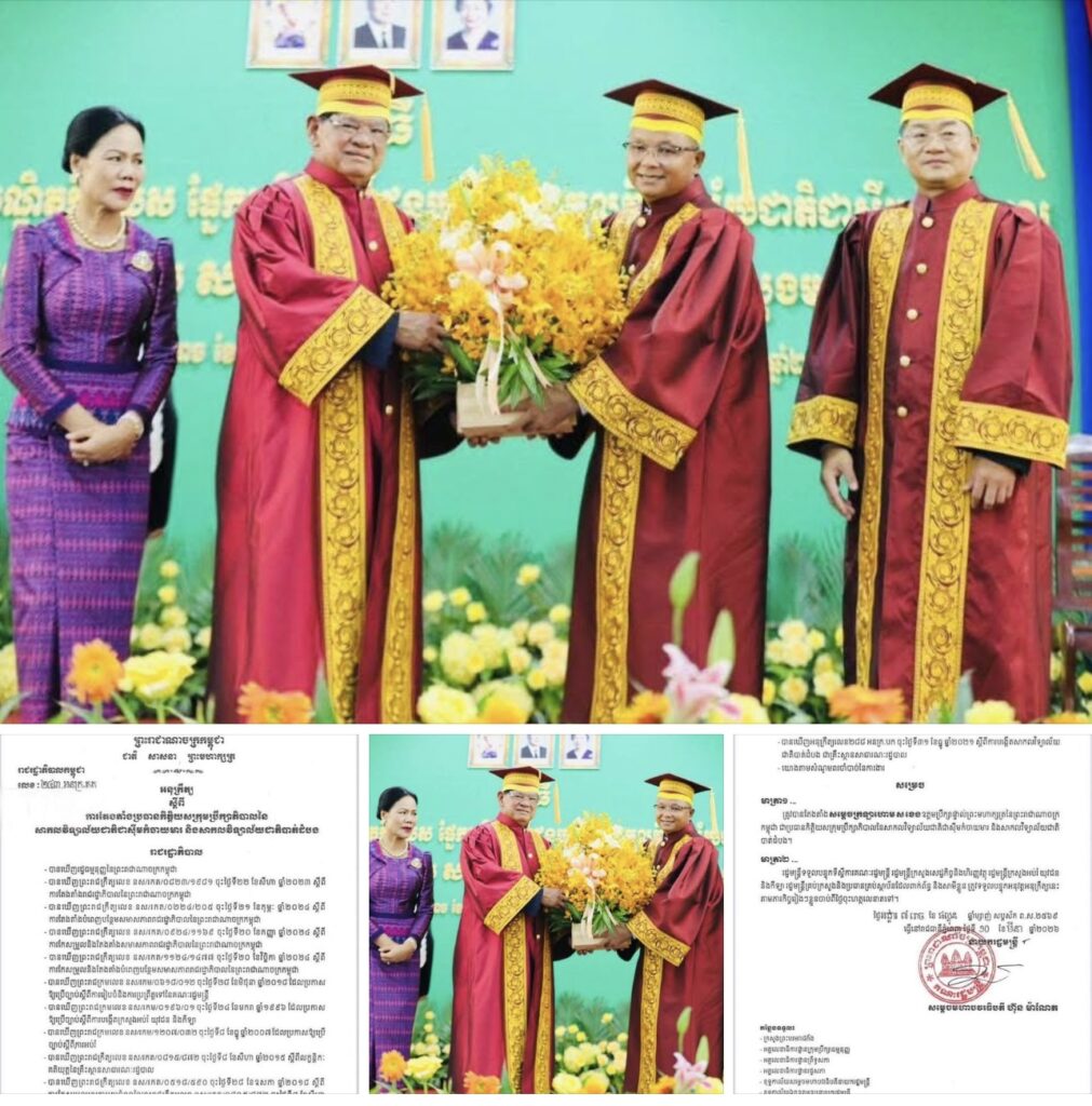 ភ្នំពេញ៖សម្តេចបវរធិបតី ហ៊ុន ម៉ាណែត នាយករដ្ឋមន្ត្រីនៃកម្ពុជា បានចេញអនុក្រឹត្យ សម្រេចតែងតាំងសម្តេចក្រឡាហោម ស ខេង ឧត្តមប្រឹក្សាផ្ទាល់ព្រះមហាក្សត្រនៃព្រះរាជាណាចក្រកម្ពុជា ជាប្រធានកិត្តិយស ក្រុមប្រឹក្សាភិបាលនៃសាកលវិទ្យាល័យជាតិ ជាស៊ីមកំចាយមារ និងសាកលវិទ្យាល័យជាតិ បាត់ដំបង៕